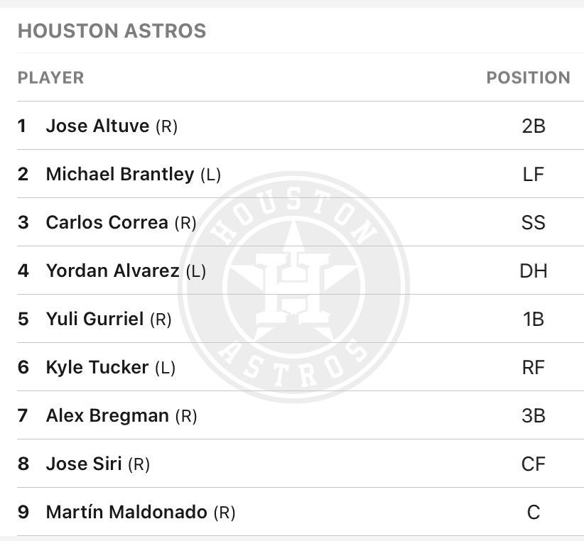 ║美聯西區第一 ║太空人先發打線圖片版: