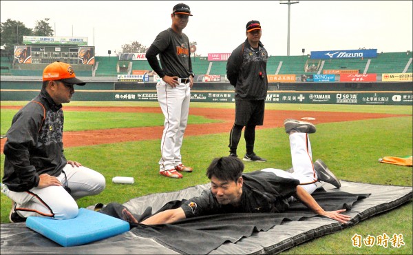 於分享經驗與心得,昨天親自示範滑壘與撲壘的動作要領,讓獅隊球員重新見識年度盜壘