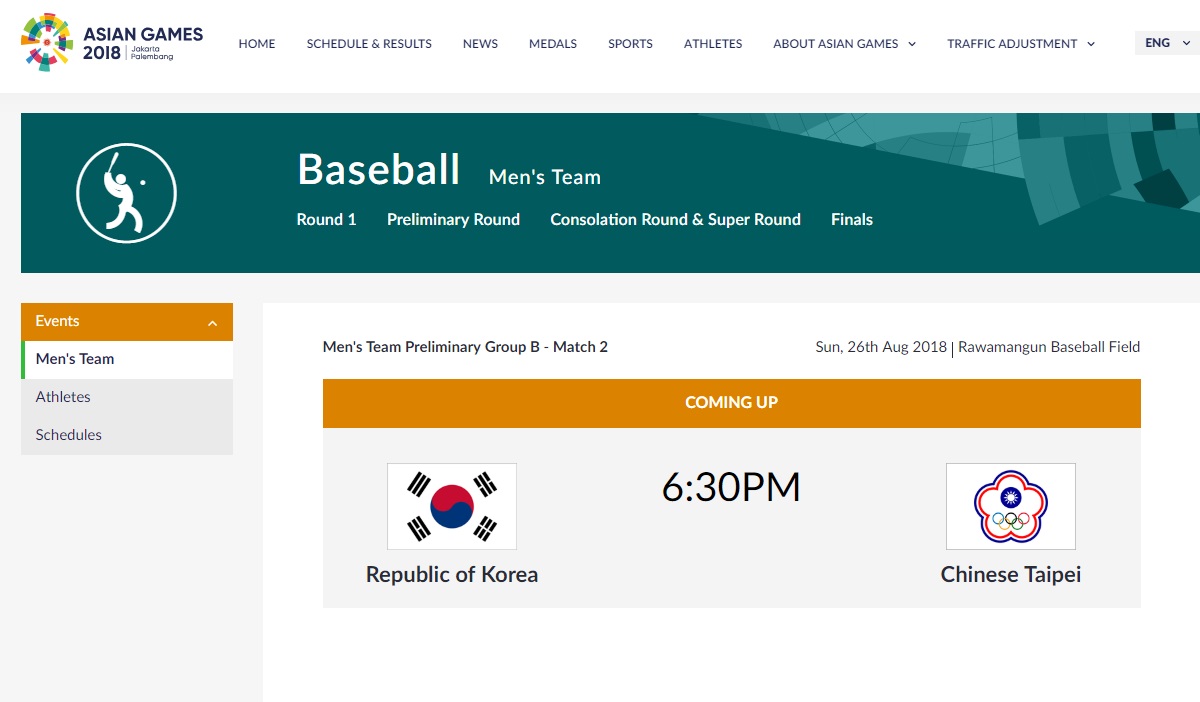 亞運棒球今天中華隊首戰對上南韓隊,精彩可期!圖/asiangames2018官網